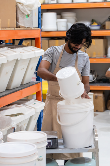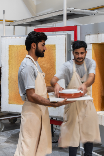 Light-filled, well-ventilated, and thoughtfully laid out, the factory offers our artisans an environment that is safe, inspiring, and conducive to precision work. Every piece begins with raw earth, shaped by skilled hands that carry years of practice and intuition. Wheel-throwing, hand-building, glazing, and firing are all done under one roof, allowing us to maintain complete control over quality and consistency.