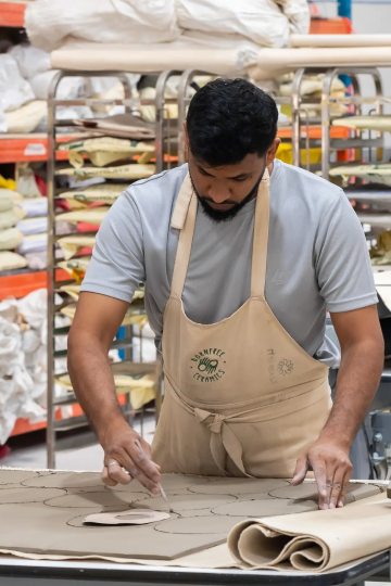 Our energy-efficient kilns, recycled water systems, and clay-reclamation processes ensure that sustainability is embedded in daily operations, not treated as an afterthought. Even broken or imperfect pieces are crushed and repurposed, feeding back into a circular production system.