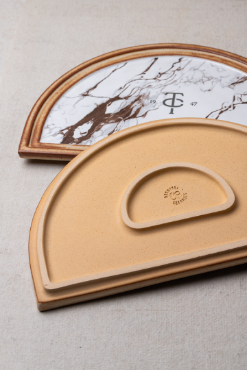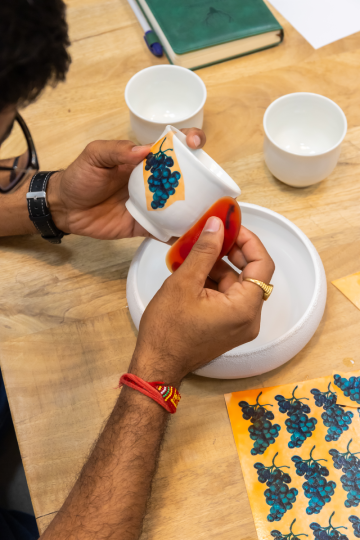 Every piece begins as a collaboration and becomes a reflection of your story shaped, glazed, and decorated using techniques like painting, carving, decals, and luster. Our in-house glazes, from soft mattes to luminous metallics, add character and distinction. With bespoke options such as logo embossing and colour tailoring, your tableware becomes art. Even our hand-applied, refired decals combine precision and creativity, creating surfaces that express individuality and the Bornfree touch.